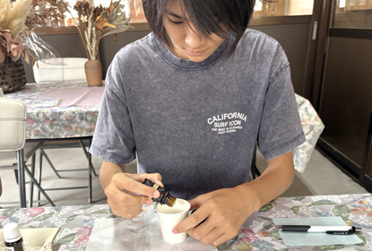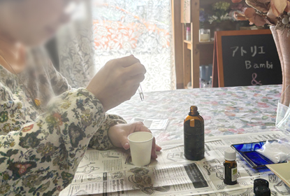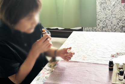 香りを確かめながら、ソルトにアロマオイルを加えて